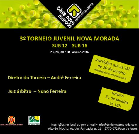 Dias 23, 24, 30 e 31 de Janeiro de 2016 no Centro de Ténis Nova Morada em Paço de Arcos, concelho de Oeiras.
